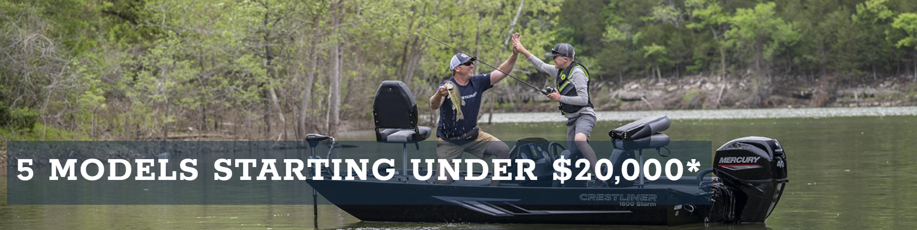 Crestliner is proud to offer a select lineup of fishing boats, each at an unbeatable value. Priced right, these Crestliner models are packed with incredible fishing features and a lot of motor – so you're ready to hit the water in no time at all.